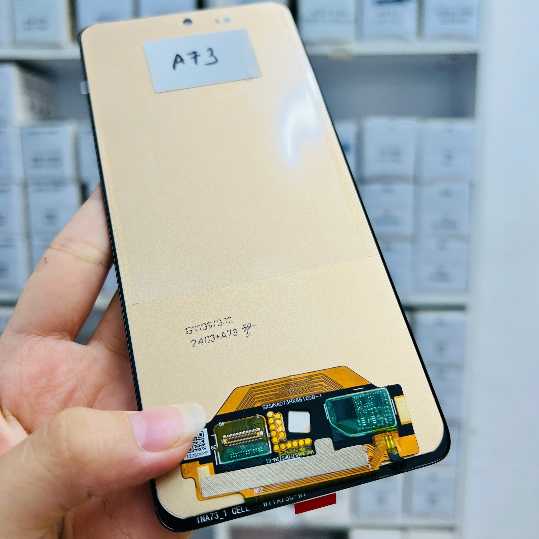 Màn hình Samsung A73 hàng công ty do King LCD phân phối, được trang bị đầy đủ mặt kính và cảm ứng, chi tiết rõ ràng. Đáp ứng đúng thông số và khung sườn máy, giúp linh kiện có thể vừa vặn với khung và giúp kỹ thuật viên tiết kiệm thời gian thay lắp màn hình mới.