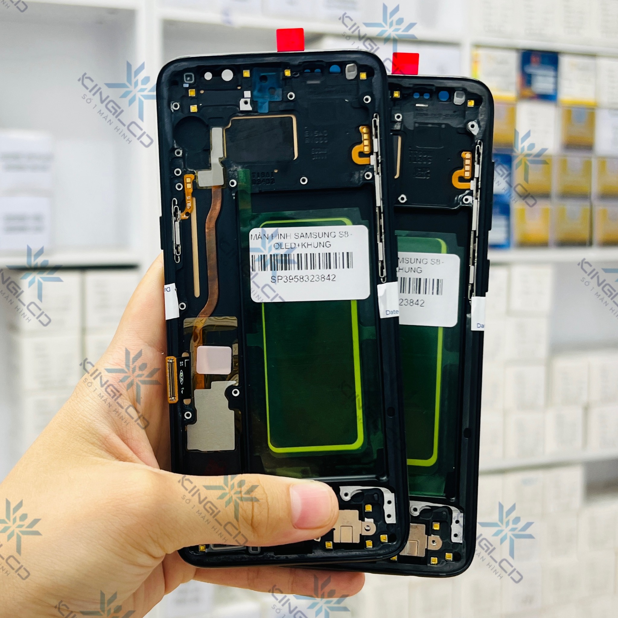 Màn hình Samsung Galaxy S8 hàng công ty do King LCD phân phối, được trang bị đầy đủ mặt kính và cảm ứng, chi tiết rõ ràng. Đáp ứng đúng thông số và khung sườn máy, giúp linh kiện có thể vừa vặn với khung và giúp kỹ thuật viên tiết kiệm thời gian thay lắp màn hình mới.